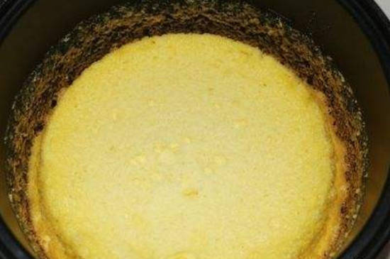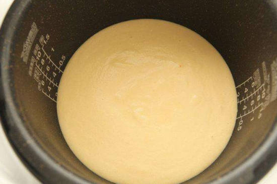 将面团倒入电饭煲之后中途不要经常揭盖查看,否则内部的热量散失就会导致火候不足,而火候不足就会影响蛋糕的制作。在电饭煲自动跳闸之后再按“保温”,等待10~15分钟之后再取出蛋糕。