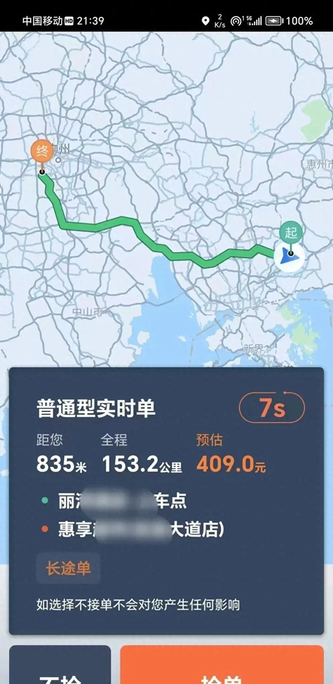 凌晨四点半,深圳福田CBD。城市还沉浸在朦胧的睡意中,出租车司机老王已经坐在驾驶座上,熟练地划动手机屏幕接单。忽然,他的眼睛一亮——一条长途订单跳了出来:深圳到惠州,153公里,预估收入409元。