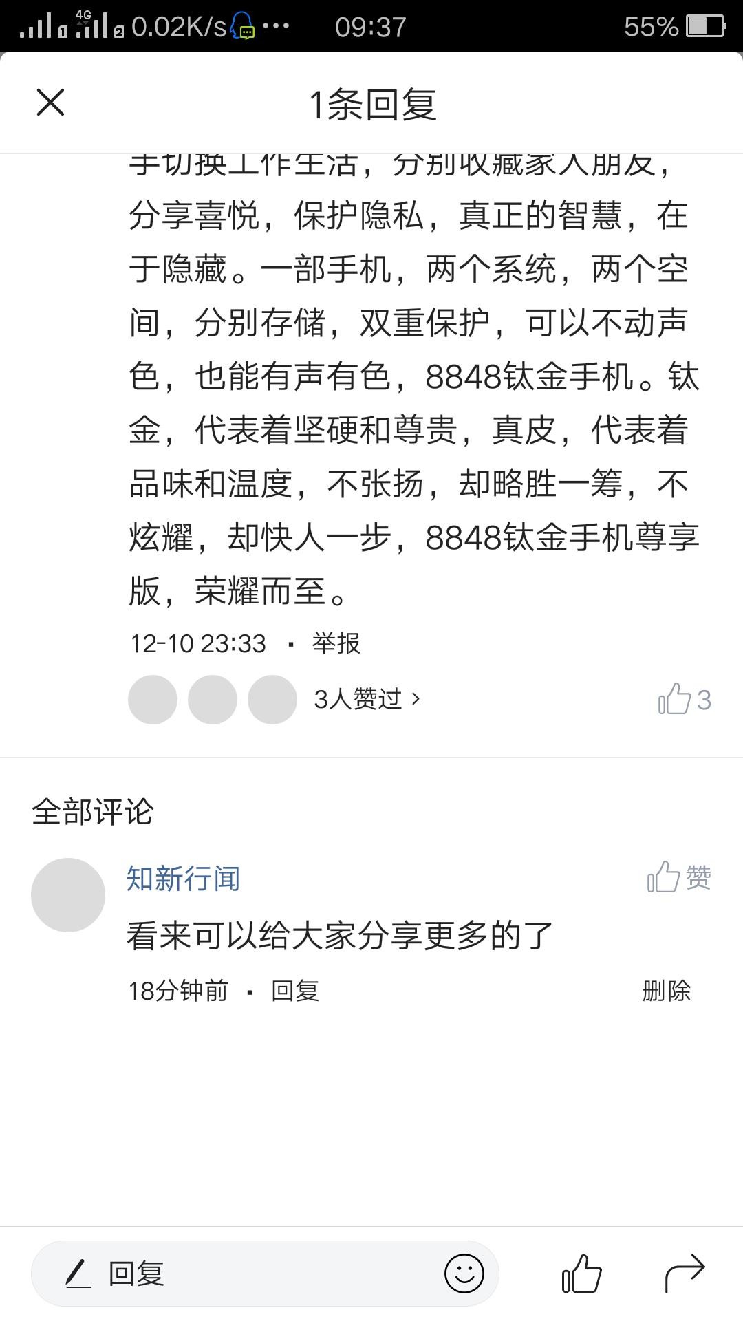 当然在文章下面也有赞美8848的,说的也是非常好。值得大家看看,除了在原广告词上做了改动,还添加了不少素材。