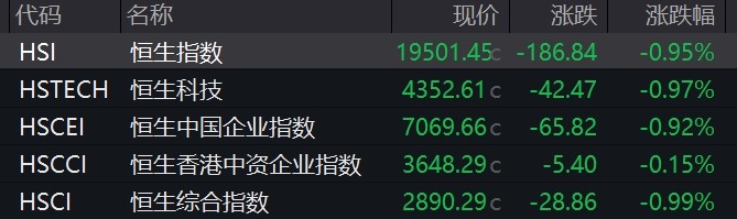 恒指跌0.95%,恒生科技指数跌0.97%。腾讯控股跌超7%,此前称被列入美国1260H清单对业务没有影响,将同美相关部门共同解决误会。