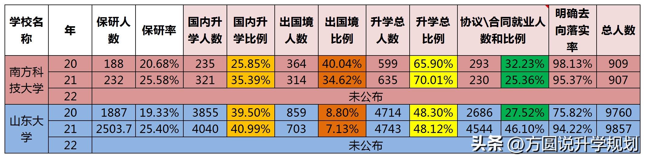 1、南方科技大学总体升学率更高,且出国出境留学比例尤其突出!