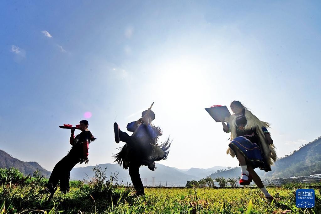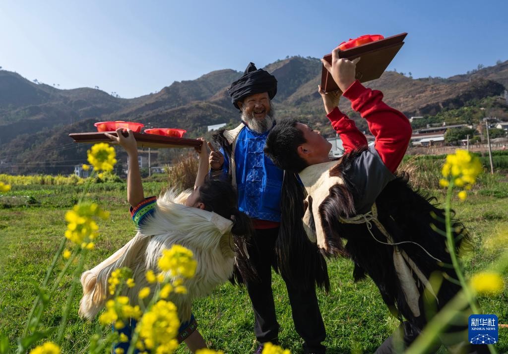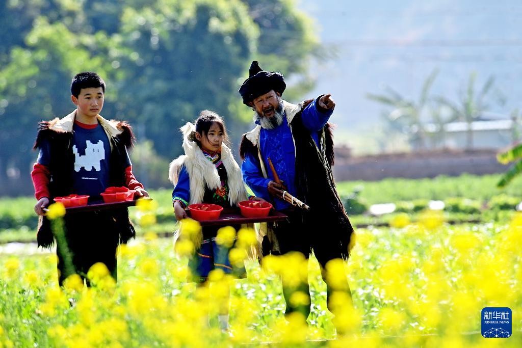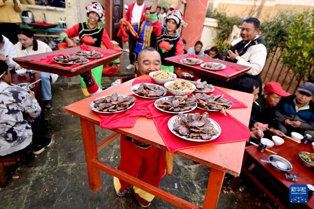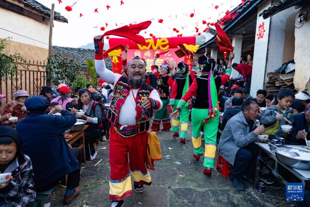 2月7日,跳菜表演者在南涧县宝华镇拥政村表演。新华社发(适志宏摄)