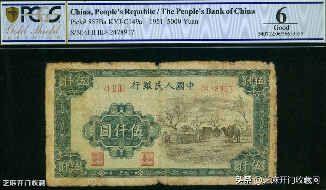 1:1948-49年中国人民银行第一版人民币5000元(蒙古包)编号2478917,成交价格: HKD 318000,