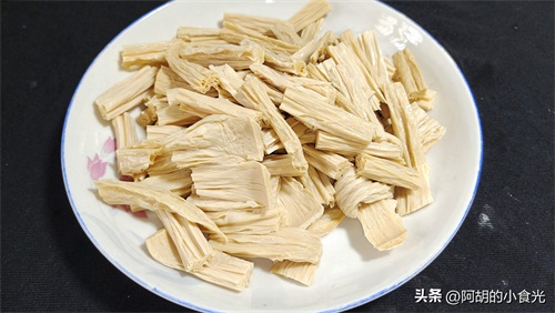 再简单的菜肴也有烹饪小技巧:这里的腐竹我经过了焯水,主要是为了防止短时间的翻炒腐竹不能完全熟透,技术过关的可以忽略这一步。