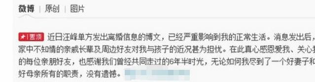 从节目中汪峰自曝得悉,当年是“他(汪峰)自己先提出的(离婚)要求”,至于离婚原因不详。可离婚消息公布的当天,康作如亦是在社交平台哭诉“与汪先生共同走过的六年半时光,我做到了一个好妻子和好母亲所有的职责,没有遗憾”,言外之意,这段破裂的婚姻原因出在男方汪峰。
