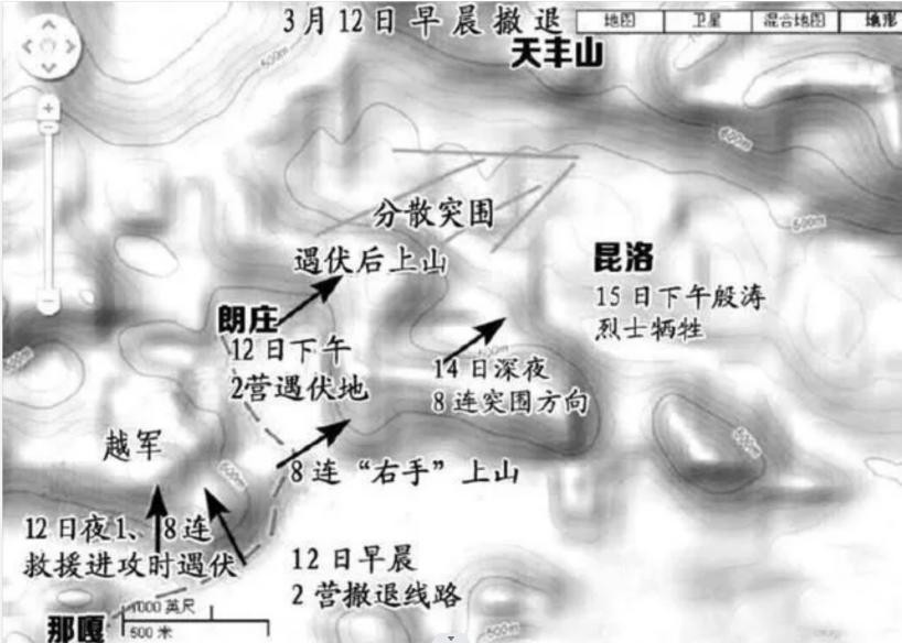 此时的越军小部队虽然没有办法击溃二营,但仍在二营队伍身后隐蔽跟踪,紧紧的咬着。而二营指挥员认为白天行军容易暴露,于是决定晚上行军,白天休息,但又怕麻烦,就没有派重兵去抢占周围制高点,以防不测。