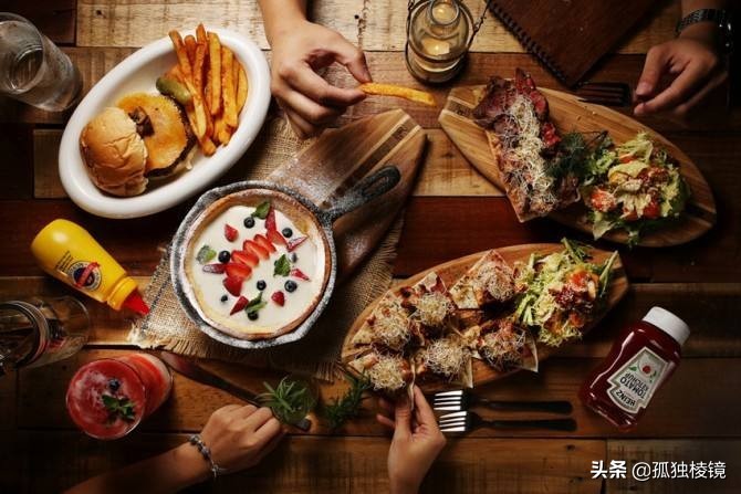 2)视角更大,可以拍到更多的内容以全面表现美食的全景,体现出一种丰盛、丰富的感觉。