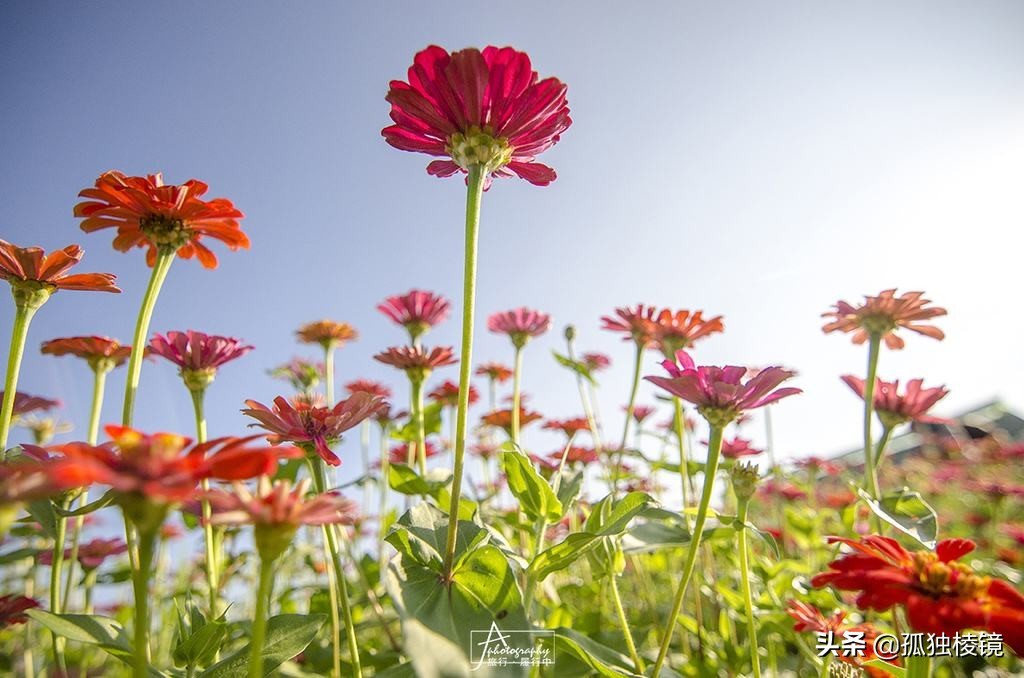 仰拍视角还显得别出心裁,让观者仿佛进入微观世界,从另一个视角领略的生命力量。这种拍摄手法尤其适合手机拍摄,利用手机的便携小巧,把手机置于花丛中平放,再利用定时拍摄就能拍出非常不错的效果。