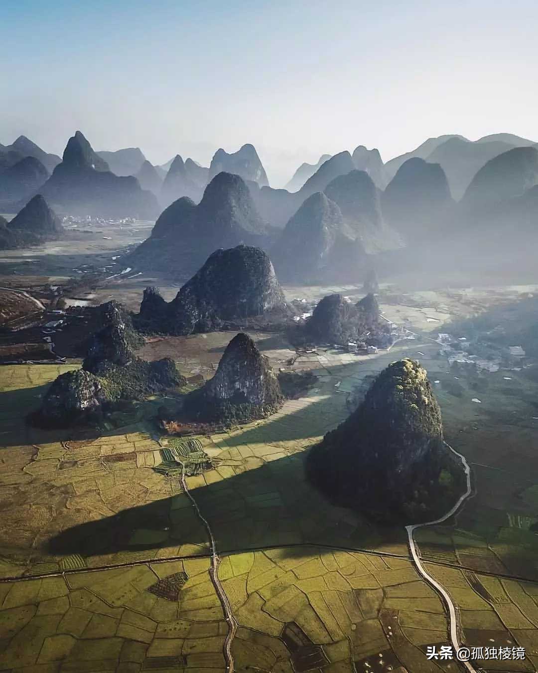 俯视角度拍摄带有地平线的景物时,可以将远处地平线置于画面上方1/3处,使近处地面景物占据画面的较大比例,从而把元素更多的纳入进来。这些很符合古人所谓的“登高望远”、“一览众山小” 的意思,仿佛一切都在自己的脚下,视觉上就能产生更大的冲击力和纵深感。