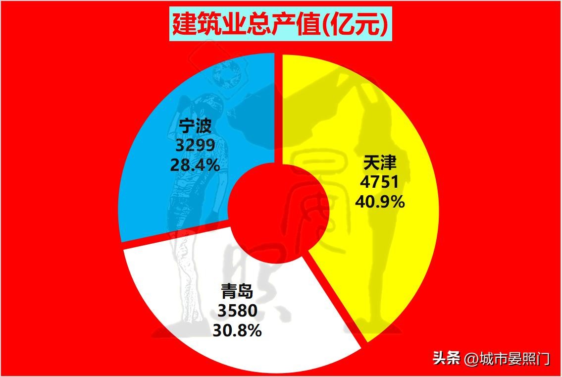 作为北方仅有的两大直辖市之一,天津除了经济实力在全国的权重每况愈下外,即便是在象征城市基建硬实力的建筑业上,同样是成绩惨淡。相比于邻居北京建筑业总产值1.37万亿,天津的不足0.5万亿堪比关公面前舞大刀。即便如此,在面对两大单列市时,也就是以至少1.33倍的绝对优势胜出。相比于天津的一马当先,青岛则是以8.5%的微弱优势力压同为副省级的宁波。
