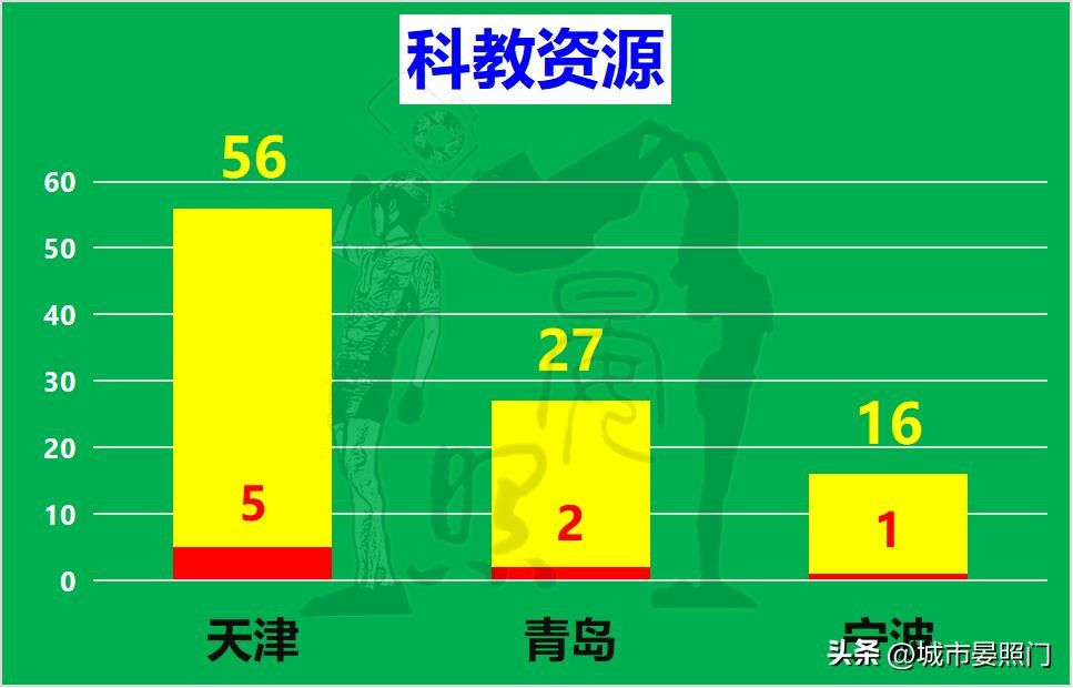 而在更为重要的战略资源科教上,身为直辖市的天津,不仅收获了5所双一流院校,而且河北省唯一的双一流院校河北工业大学主校址也是位于天津,顶尖学府数量远超青岛+宁波的总和。即便是在大学绝对数量上,拥有56所大学的天津,同样是堪比一枝独秀。别看青岛以27:16的压倒性优势完胜,但和天津相比,差距依旧高达2倍以上,以至于宁波的大学数量还不及天津的30%,远低于人口的70%。