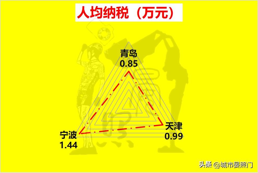 没想到,在人均收入上以9.6%的优势力压天津的青岛,却在纳税贡献率上,反而以16%的悬殊不及天津。不过,成功逆袭青岛的天津,在面对同样是副省级计划单列市的宁波时,依旧是略显黯然失色,而且1.45倍的差距甚至还超过了人均GDP和人均收入。以至于垫底的青岛,和宁波之间的差距达到了1.69倍,这也是三座城市在人均经济指标上的首尾差第一次突破40%。