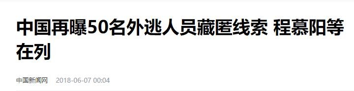 中国新闻网2018-06-07——中国再曝50名外逃人员藏匿线索 程慕阳等在列