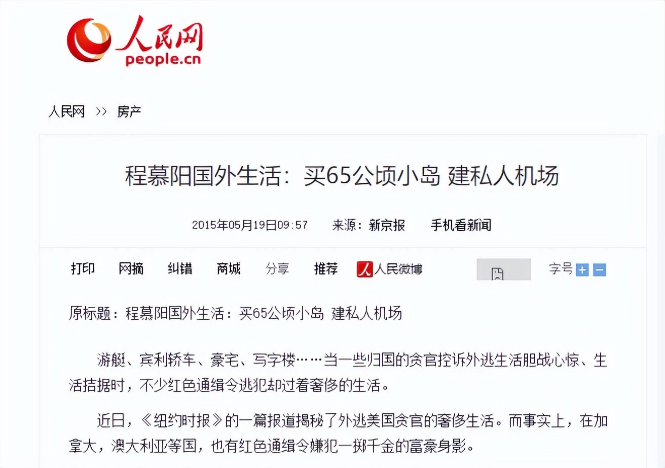 2015年,我国发布了“红色通缉令”,专门追查在境外潜逃的贪官,程慕阳当然也在其中。