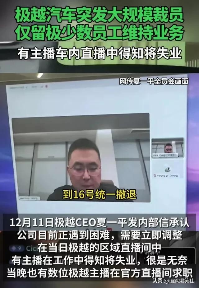 近期,极越汽车的破产消息引发了广泛的关注。这家曾被誉为新能源汽车行业新星的企业,曾一度在市场中占据重要地位。然而,由于经营不善、资金链断裂等原因,极越最终宣布破产。而在这一波风波中,创始人夏一平成为舆论的焦点,投资人纷纷围堵,要求他为企业失败负责。与此同时,代言人佟丽娅也意外卷入这一风暴,她的“蒙圈”状态成为了公众讨论的新热点。究竟,夏一平和佟丽娅之间有什么样的关联?又为何她的形象也受到了连带影响?