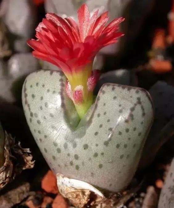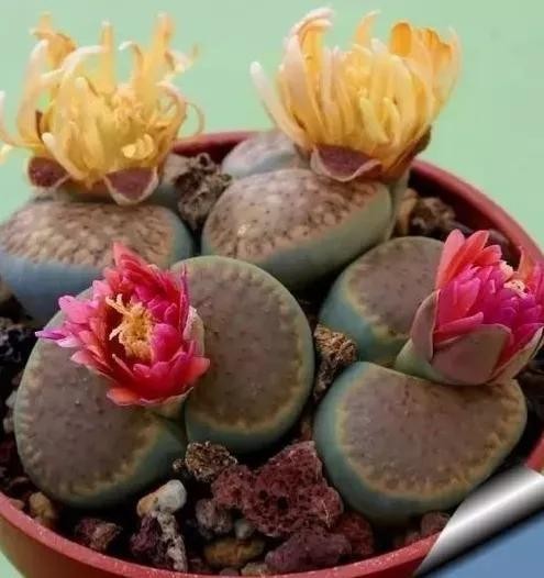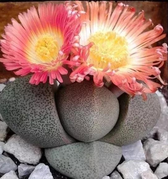 石头花又名生石花、象蹄、元宝等,原产非洲南部,是一种多肉植物,状如石头,形态奇特,花色艳丽。