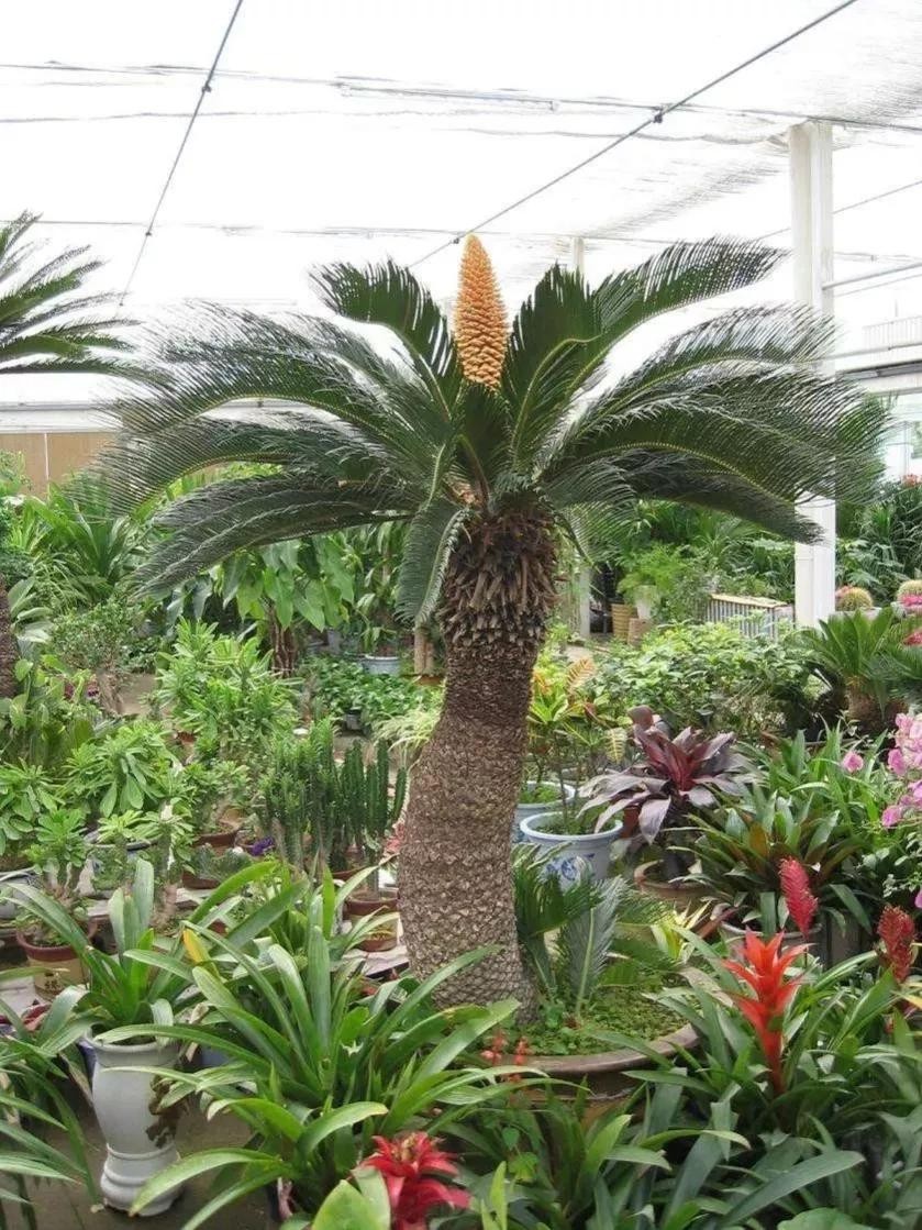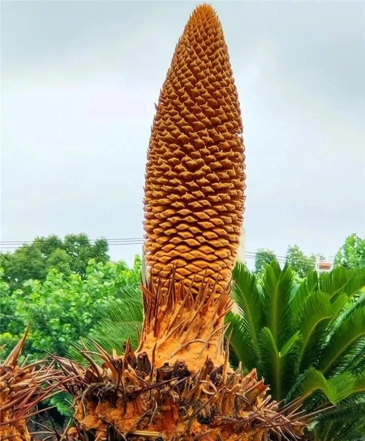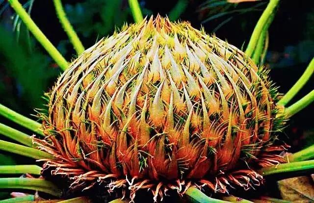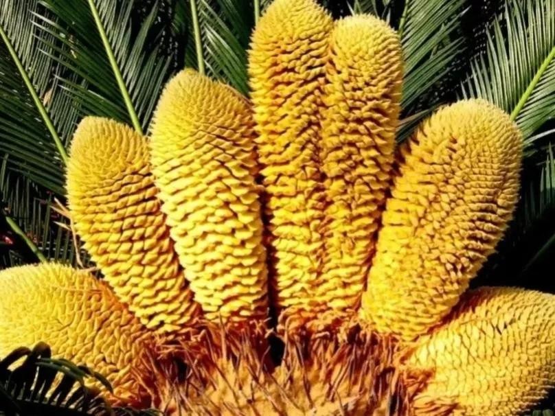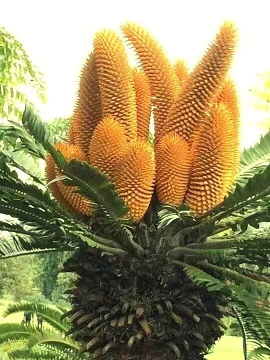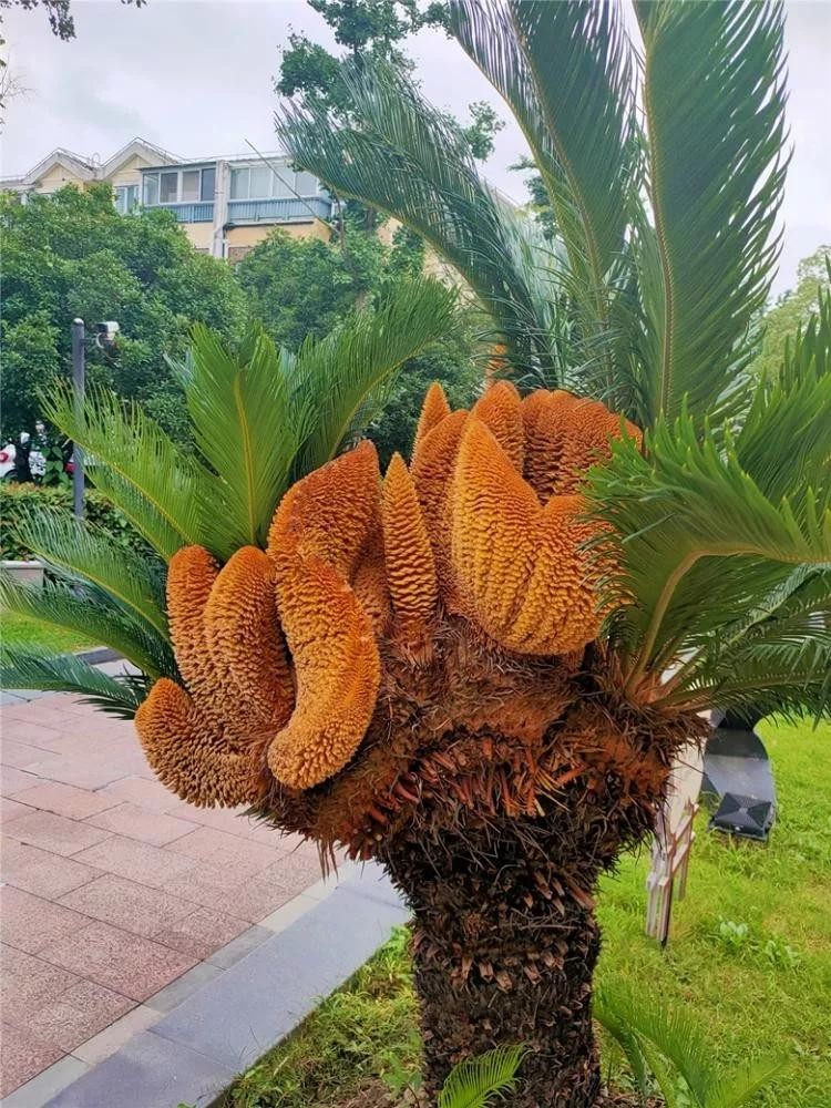 铁树开花实际又分公母的,雄铁树开柱状花但不结果,雌铁树开圆盘状花而且结果。