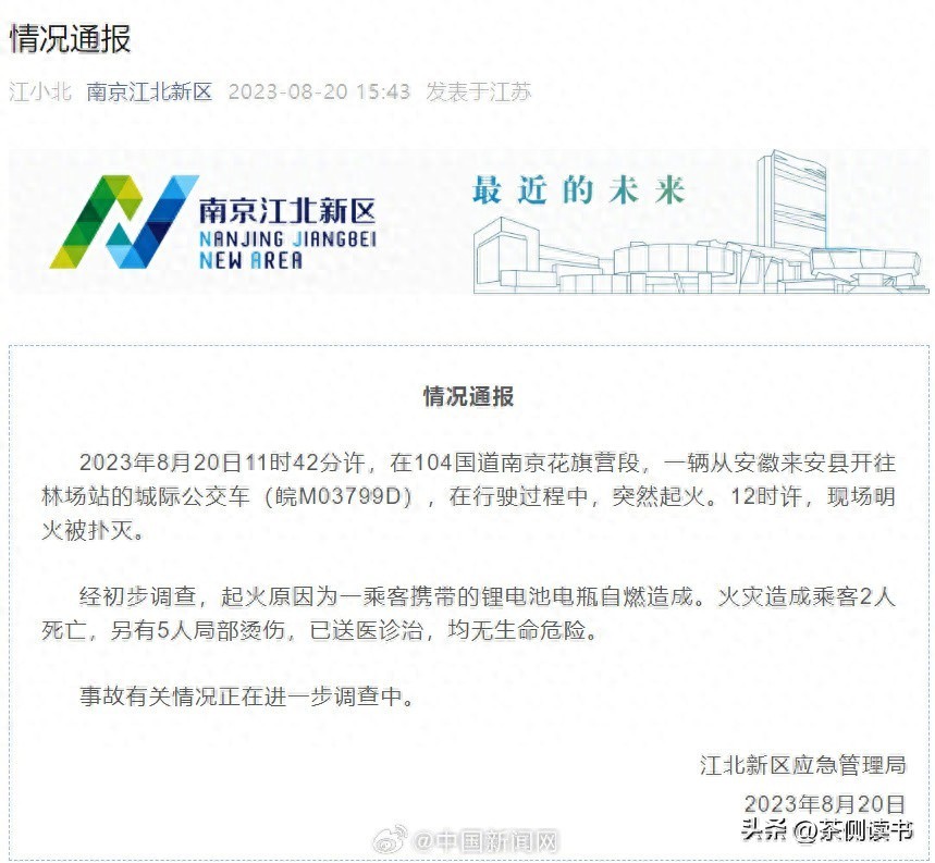 安徽一大巴行驶中起火,2死5伤,目击者称瞬间烧完