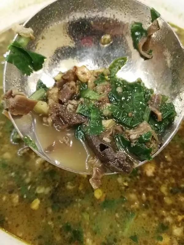 羊瘪汤是隆林特色美食,制作原料主要有肠、肚、血,就是把羊内脏、油、血、肝、肺剁碎混合煮熟再加胆汁的一种杂味汤,是居住在大石山地区苗族人家利用山羊的内脏制作的一道风味独特的佳肴,是苗家医治胃病的常用良药,也是接待宾客的上乘菜。山羊主食百草,其肉质营养丰富。羊瘪汤主要有三种吃法:一是原汁原味型:什么佐料都不加,根据食用量的多少,直接把热锅里的汤水舀到盛有肉料的盛器内即可食用。二是苦胆、泽兰味型:就是在热汤里加入适量的苦胆、鲜艳的泽兰叶(药材)一小把(切细),使之有一些苦味和泽兰香味。这种羊瘪汤具有辅助治病和明目的功效。三是多味型:这是根据个人的喜好来决定的,有的人在汤里加八角,生姜,沙姜或者其他的草药。