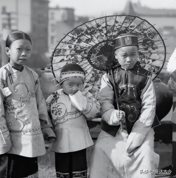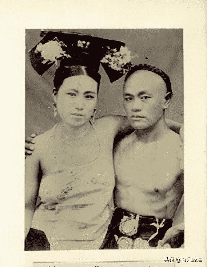 清末满族新娘风俗照,旁边是她的仆人。