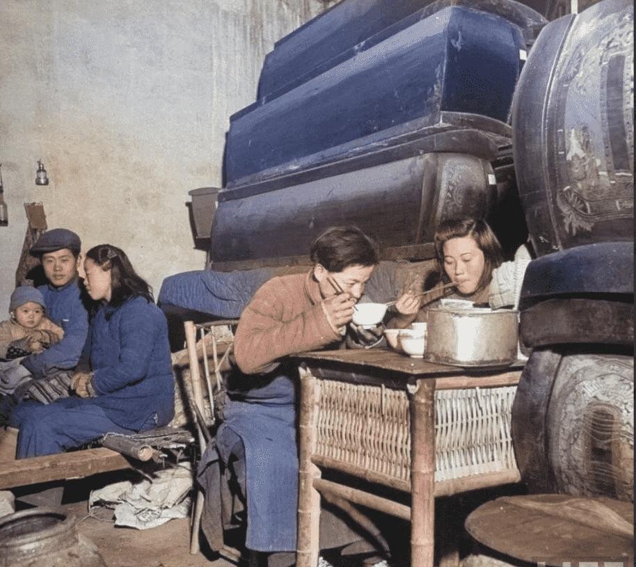 这在当时也是大户人家,大家看,除了米饭,其它碗都是空的,老百姓苦啊!桌子金丝楠,青花瓷,筷子紫檀木尽是宝,桌子上的碗都是好东西啊