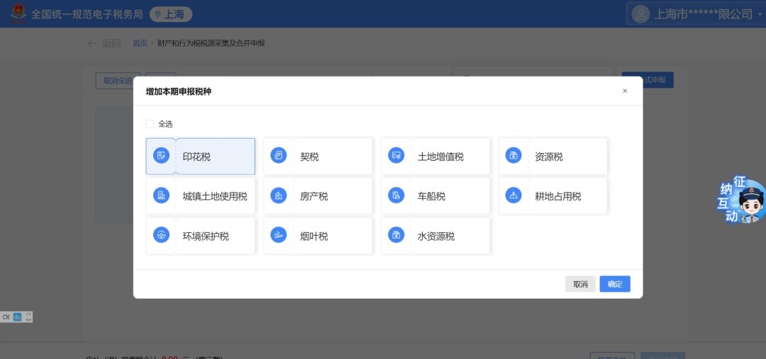 勾选增加本期申报税种:“印花税”,点击【确定】。