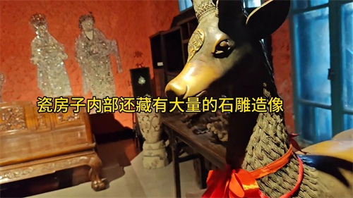 2. 瓷房子内部还藏有大量的石雕造像、汉白玉石狮子、瓷猫枕等艺术品及用瓷片拼贴而成的画作,极具观赏价值。瓷房子的装修材料主要包括 7 亿多片古瓷片、13000 多件古瓷瓶、瓷盘、瓷碗、300 多尊历代的石雕造像、300 多件汉白玉石狮子、300 多个瓷猫枕以及 20 多吨的水晶玛瑙等。