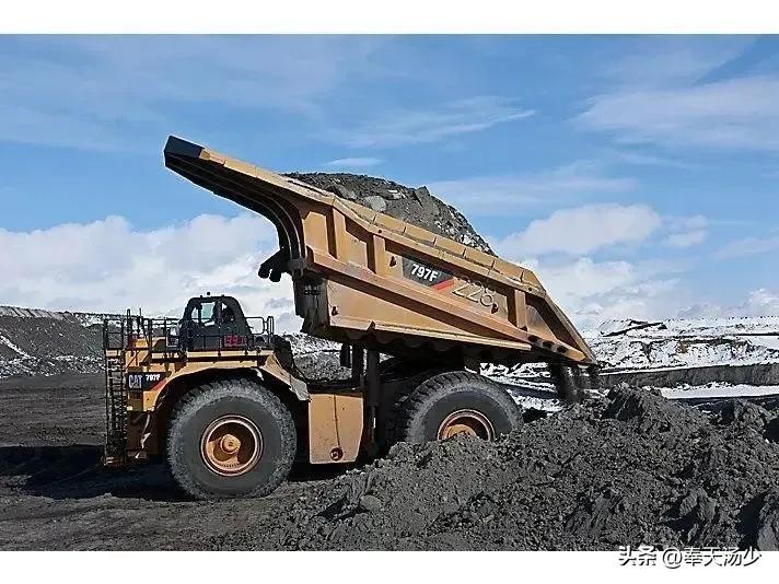 卡特797自重288吨,车厢容积267立方米,额定载重363吨。