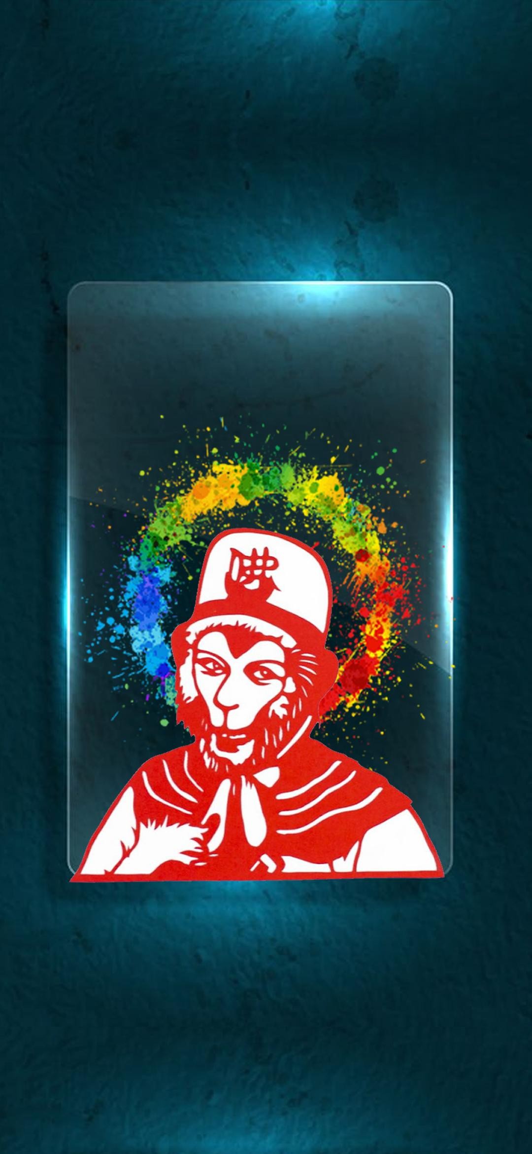下面这张壁纸,福图一刻把悟空剪纸放在了透明玻璃上,也很有质感。