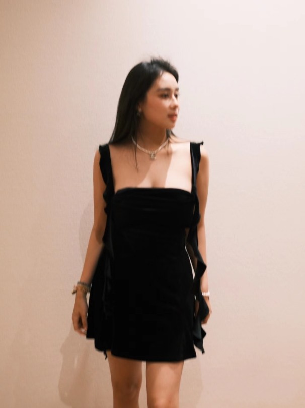 何超欣作为四太最小的女儿,穿着黑色长裙搭配一件黑色小香风的外套,化着精致妆容,随妈妈四太皮肤特别的好,而四太则穿着白色针织毛衣搭配淡蓝色的裤子,很是优雅休闲,不予争锋的既视感。