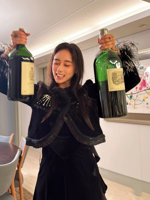 奚梦瑶随婆婆出席品酒晚宴!小姑子开心提两大瓶,颜值超高名媛范