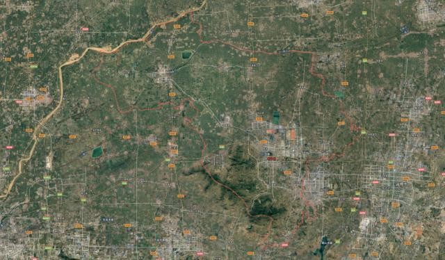 山东省滨州市邹平市处于鲁中泰沂山区、鲁北黄泛平原的交界处,其地形如下所示。