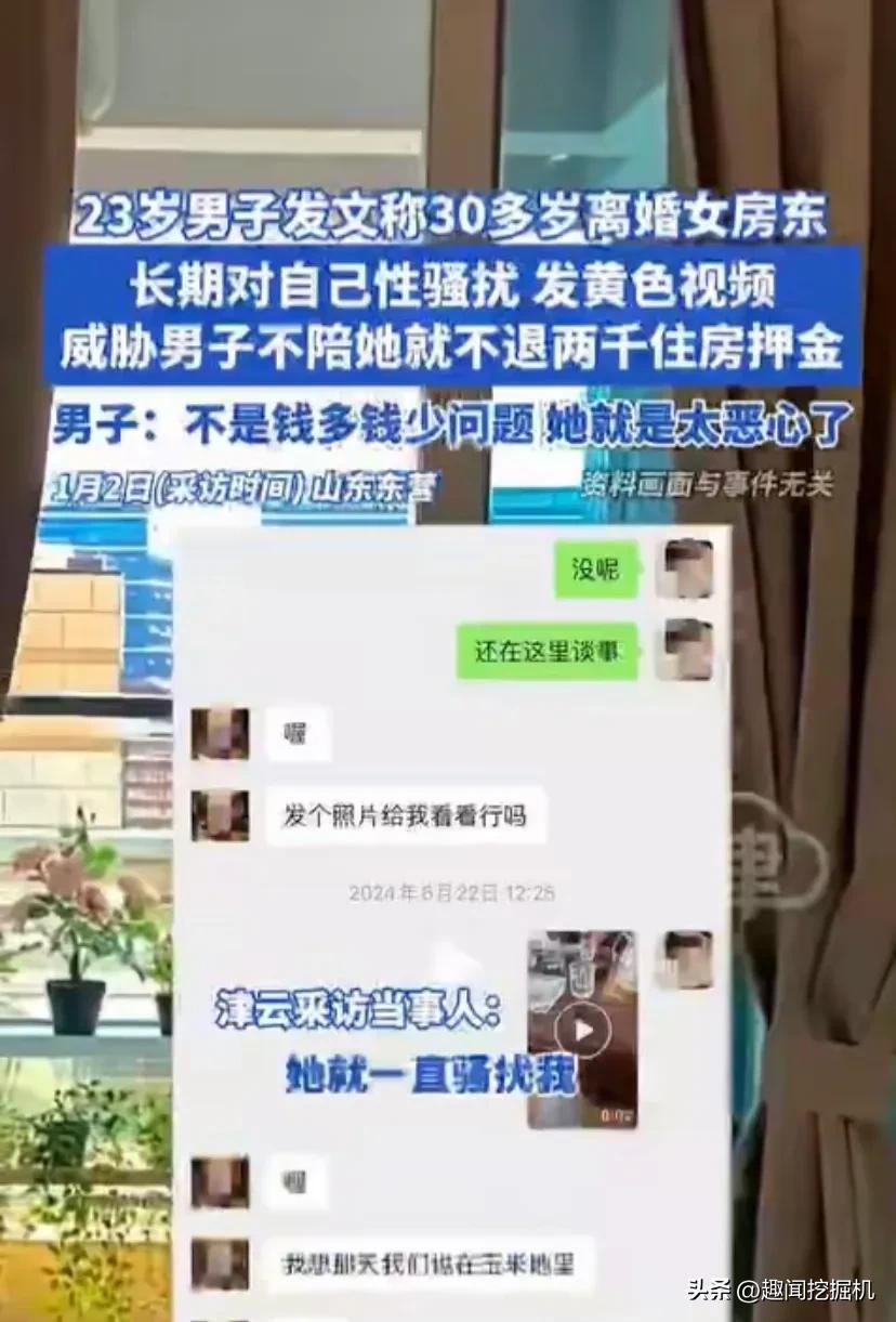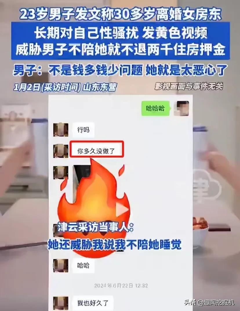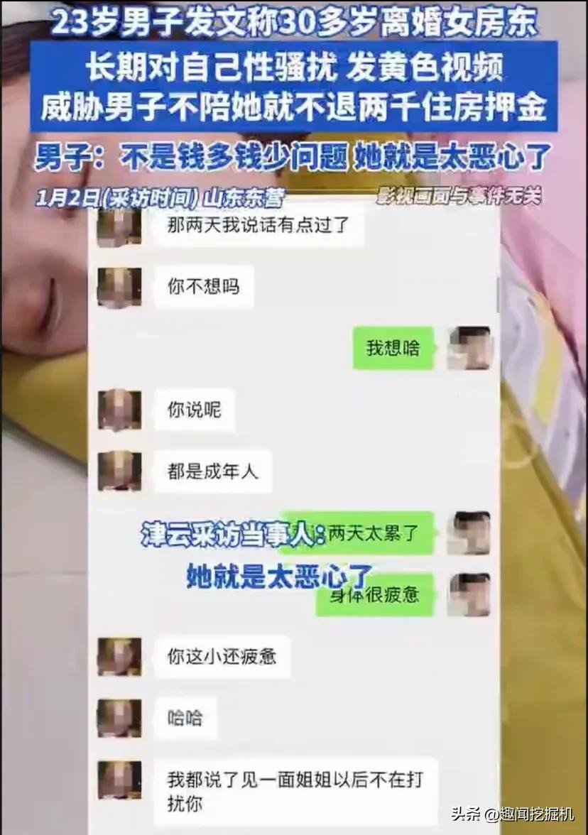 近日,一则惊人的消息在网络上掀起轩然大波。山东一位 23 岁的年轻小伙勇敢地在网上爆料,称自己遭遇了 30 多岁女房东的性骚扰。这可不是一般的骚扰,女房东不仅言语露骨,还频繁发送带颜色的视频,甚至以不退押金相要挟,逼迫小伙就范,陪她睡觉。此事件一经曝光,瞬间吸引了大众的目光。