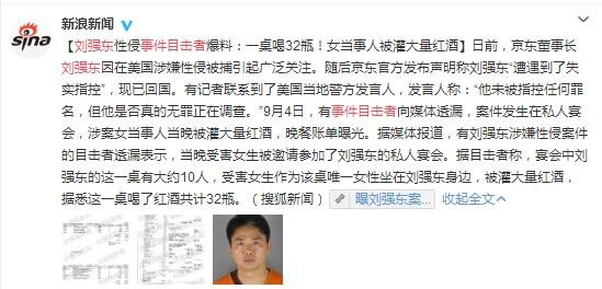 刘强东被控性侵 目击者:女主曾被灌大量红酒