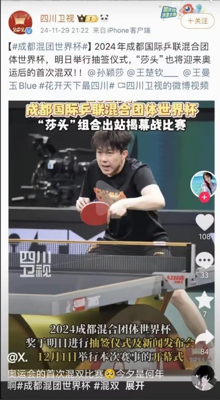 2024年成都混合团体世界杯首日,莎头未出战混双,引发巨大争议。因为在前期宣传中,四川卫视的新闻极具误导性了,让很多粉丝觉得首日莎头将迎奥运会首秀,其中包括新华社等权威央媒也进行了转发。此举动引来网友怒批:质疑主办方为了卖票,玩文字游戏。甚至有网友调侃:莎揭幕+头出战=莎头出战。(PS:笔者觉得四川卫视缺少一个道歉,说严重点这算新闻失实)