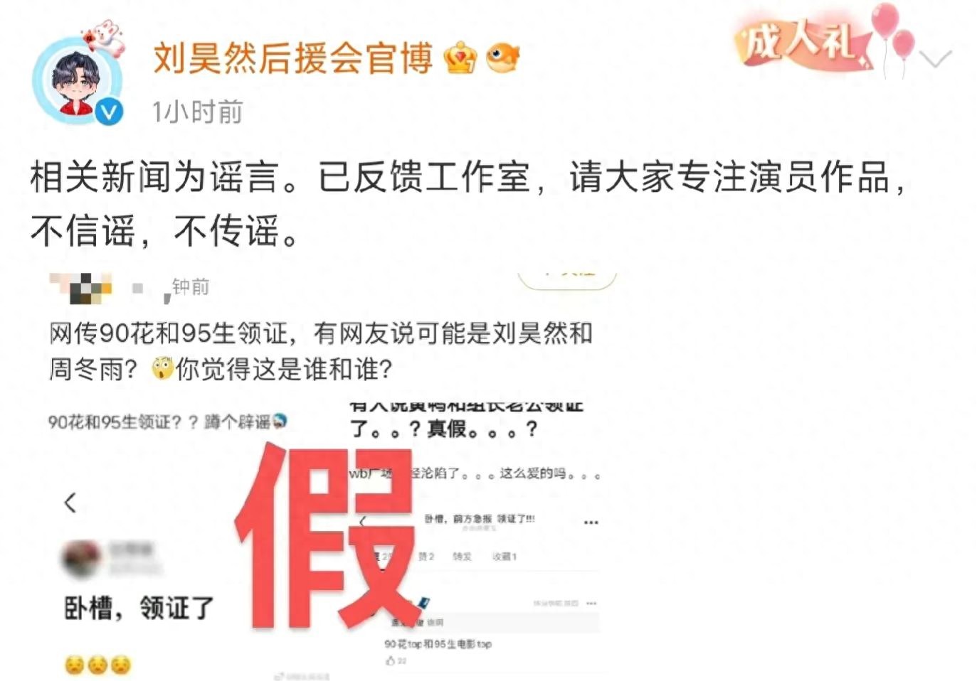 名为“刘昊然后援会”的官方平台发声了:“相关新闻为谣言,已反馈工作室,请大家专注演员作品,不信谣不传谣!”