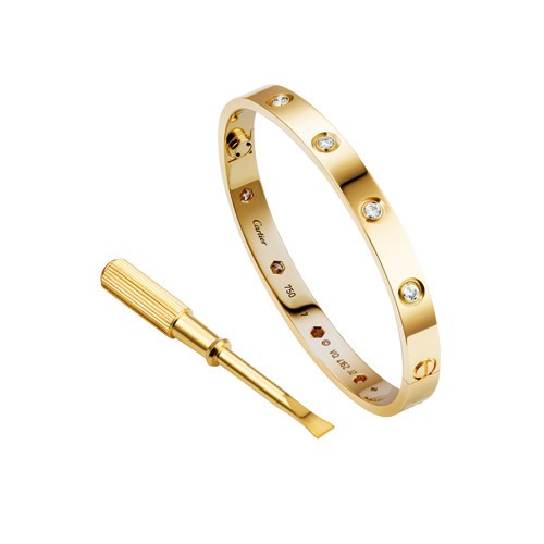 卡地亚love手镯:大部分消费者对卡地亚品牌印象最深的为love系列的手镯,从明星到达人网红,几乎人手一只的时尚单品,让它成为珠宝界最炙手可热的手镯款式之一。而卡地亚这个系列的手镯价格整体上是比较昂贵的,在其官网可以发现目前最便宜的小号款素金手镯报价30500元。镶钻款的手镯价格更贵一些,其中镶嵌一颗钻石的就要39900元,而镶嵌6颗钻石的要45100元,镶嵌10颗钻石的61000元,满钻款卡地亚love手镯更是要201000元。