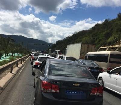 昆石高速车祸连发堵瘫了 救护车被困,呼吁让出生命通道