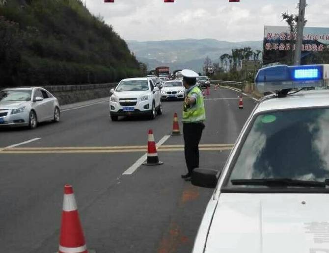 交警对事故车辆施救,目前,已封闭石林北、石林、宜良A匝上行入口。