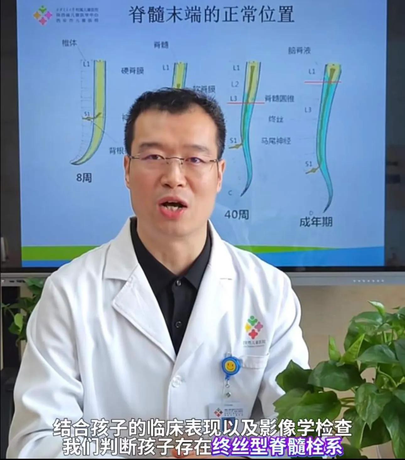 这可把欢欢的家人急坏了,他们立刻将孩子送往了西安市儿童医院。到达医院时,距离欢欢受伤已经过去了整整九个小时。医生经过详细的询问和检查,最终给出了一个令人震惊的诊断结果:欢欢存在隐匿性脊髓拴系,而这次被打正是导致脊髓损伤的“元凶”。