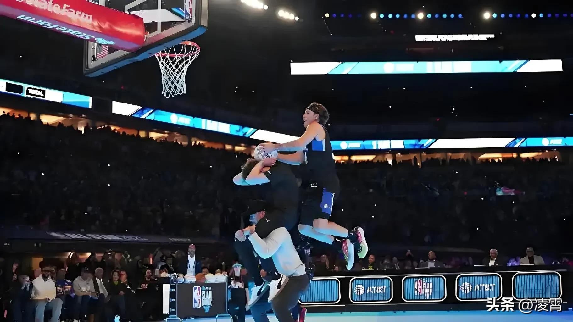有人可能会说,不就是扣个篮嘛,能有多厉害?那你可就大错特错了!在NBA的赛场上,能参加扣篮大赛的选手个个都是精英中的精英,想要在高手如云的比赛中脱颖而出,没有点真本事可不行。麦克朗的这个扣篮,不仅展现了他超强的身体素质和弹跳能力,更体现了他那无限的创意。他打破了传统扣篮的固有模式,给大家带来了全新的视觉体验。