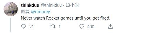 有网友表示,在莫雷被解雇前,绝不会再看一场火箭队比赛!