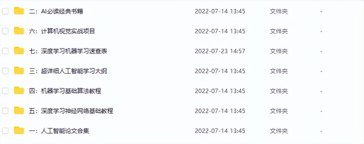 免费分享一些我整理的人工智能学习资料给大家,整理了很久,非常全面。包括一些人工智能基础入门视频+AI常用框架实战视频、图像识别、OpenCV、NLP、YOLO、机器学习、pytorch、计算机视觉、深度学习与神经网络等视频、课件源码、国内外知名精华资源、AI热门论文等。