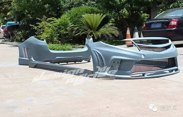 怎么样,看起来这个前包围和侧裙还是不错的吧。这是采用了FRP纤维钢材料,优点就是工人的抗冲击,并且重量比较轻,国外的一些高档汽车采用的就是这种材质制作的包围。价格也就两千多块。