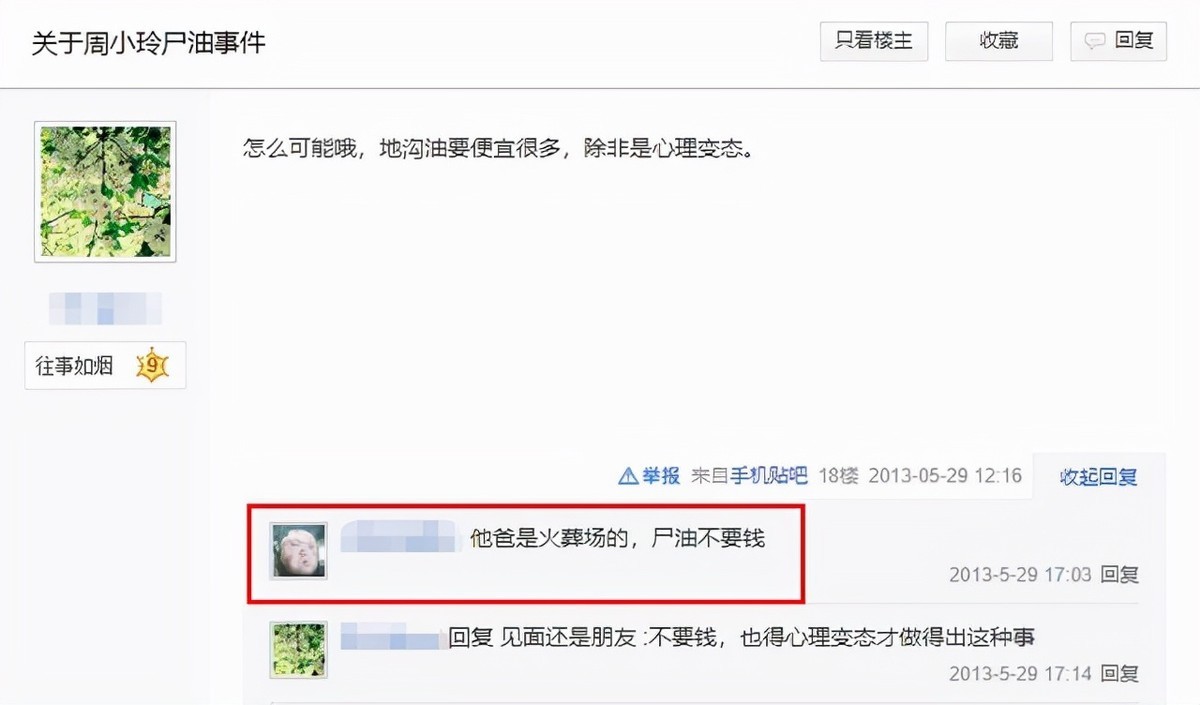 当时这个散播谣言的人讲得有板有眼,说周小玲父亲是火葬场的领导,而周小玲辣条里的油,就是她爸爸从火葬场那弄来的尸油。