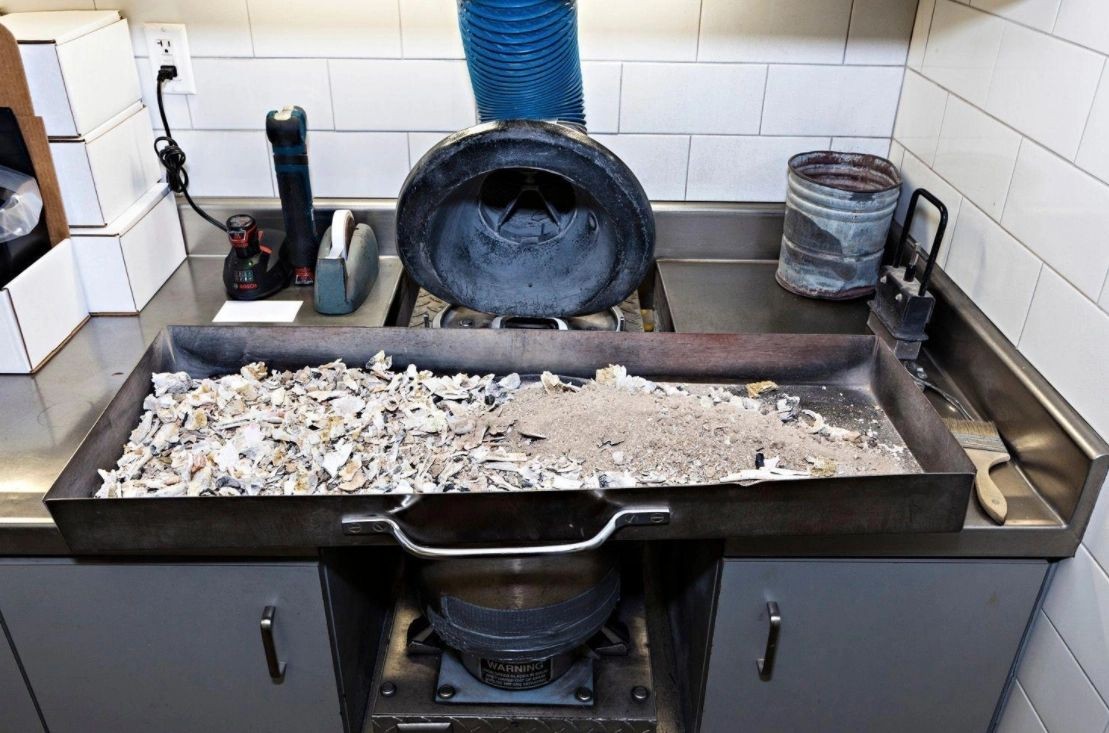 在火化结束之后,他们会把烧完的骨灰放在骨灰盒里,随后清理炉内的杂质和环境。