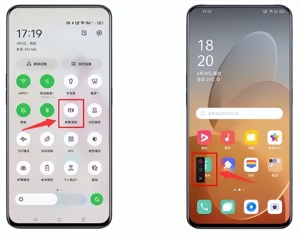 OPPO手机录屏方法一:控制中心