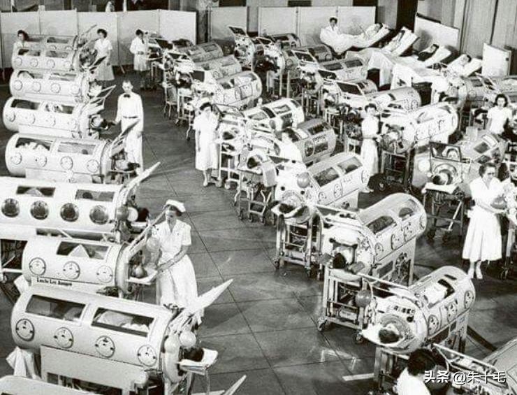 这是1940年到1950年期间,一家医院的场景。有很多孩子都被放到了这个铁盒子里,这些孩子都有一个共同点,那就是患上了脊髓灰质炎,也叫小儿麻痹症。得了这种病会导致呼吸肌无力,一直到1957年,脊髓灰质炎疫苗被研发出来,这一病情才得到了控制。