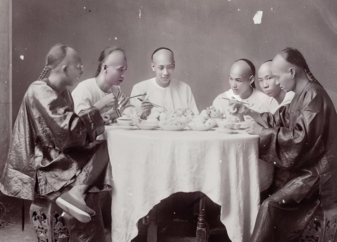 一群教书先生,他们围坐在一起吸食着鸦片。