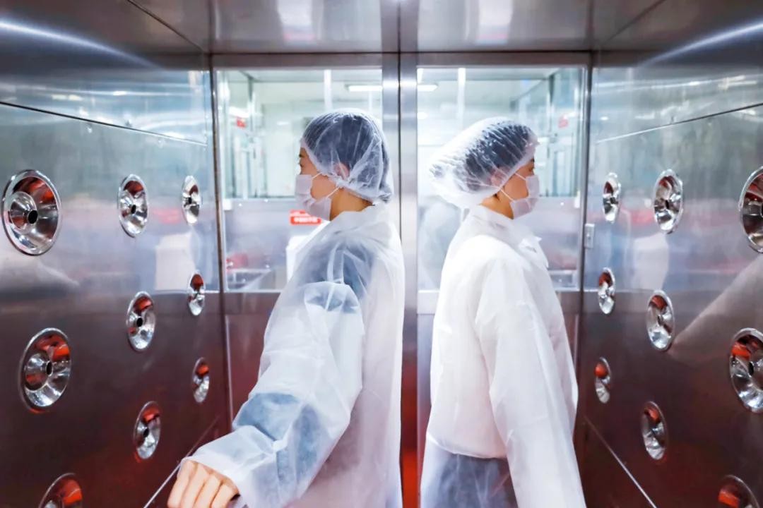 生产人员进入加工车间之前,必须经过一系列严格的消毒程序,其中分装间卫生要求最严格,空气净化后洁净度达到10万级,符合食品卫生标准。